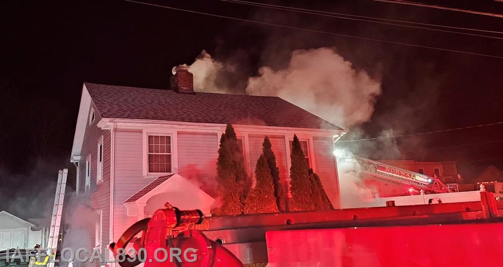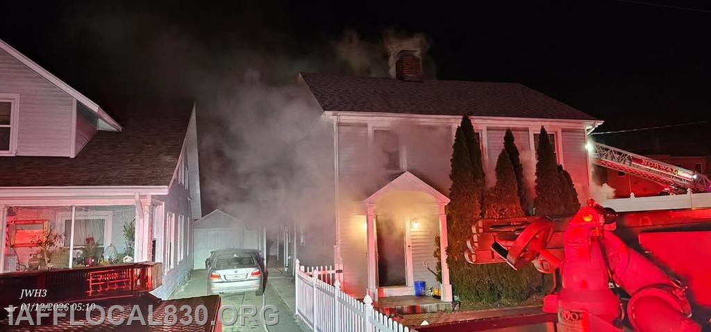 City of Norwalk Professional Firefighters responded to a house fire at 4 Camp Street on Monday, January 12th at 05:02, with a first alarm assignment of 3 Engine Companies, 2 Truck Companies, 1 Rescue Company, and Command and Safety personnel.