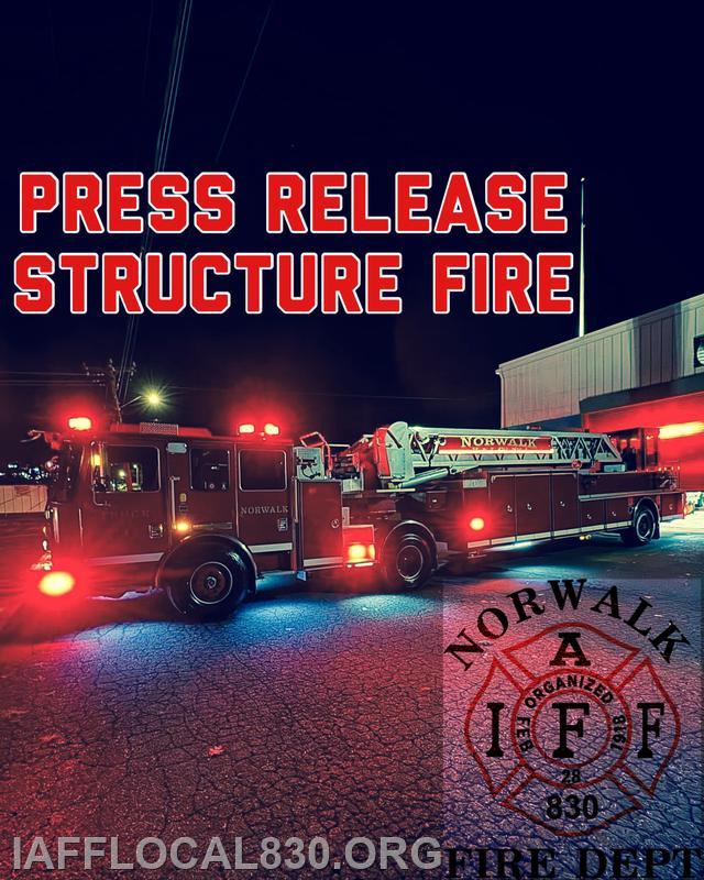 The fire was extinguished in 25 minutes by a 1st alarm assignment consisting of 3 Engines, 2 Trucks, and 1 Rescue, and the Shift Commander; totaling 26 Norwalk Professional Firefighters.
